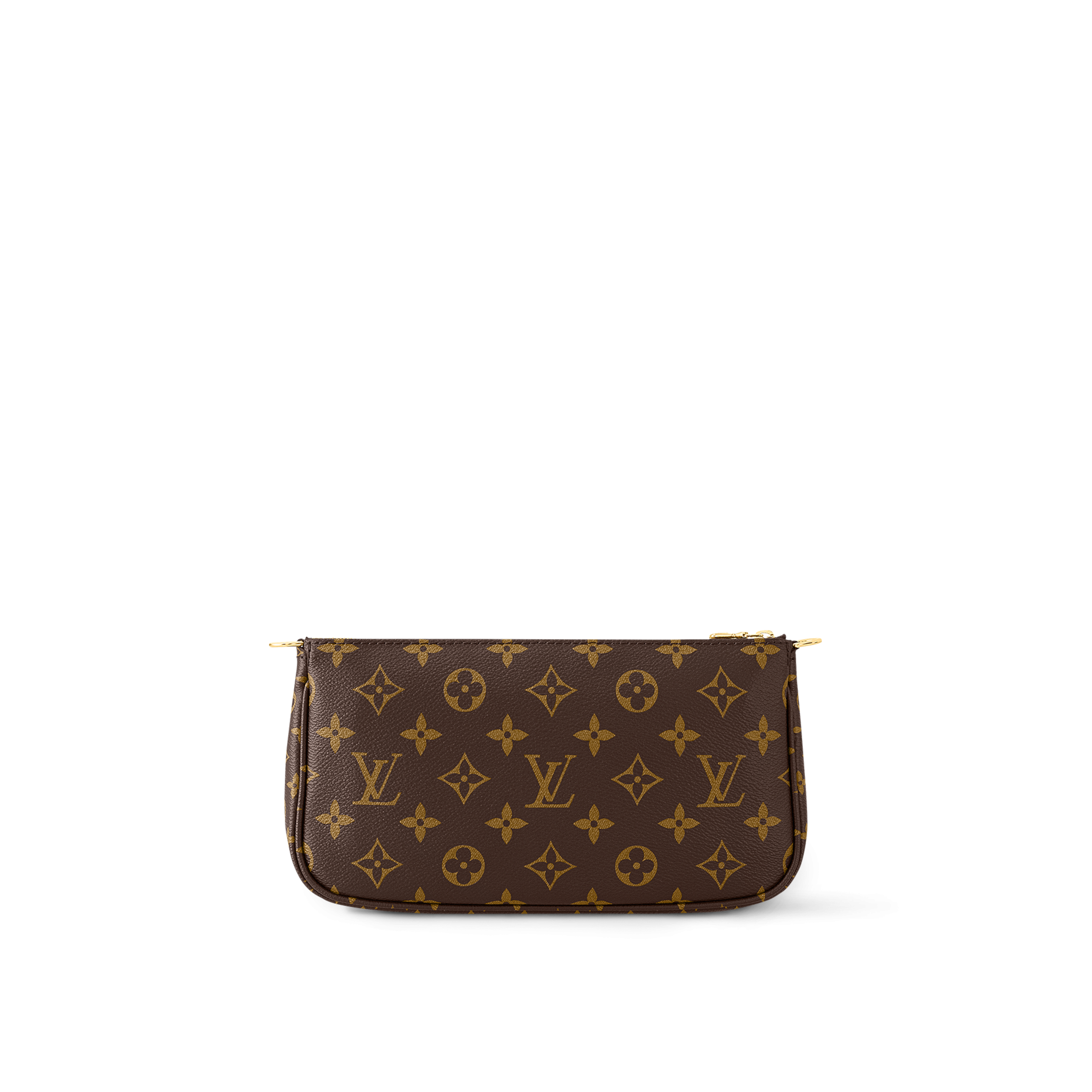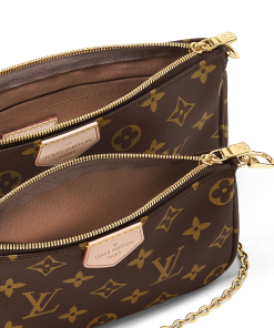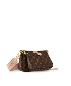 The Multi Pochette Accessoires is a hybrid cross-body bag with multiple pockets and compartments that brings together a Pochette Accessoires, a Mini Pochette Accessoires and a Round Coin Purse. Fashioned from Monogram canvas with a mini Monogram pattern on the sides of the two pochettes, it has both a removable gold-tone chain and an adjustable Louis Vuitton inscribed Jacquard strap for multiple carrying options.