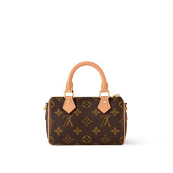The Nano Speedy revamped in Monogram canvas is the perfect miniature version of Louis Vuitton’s iconic Speedy bag, and the ideal way to carry essentials. This beautifully crafted design is complemented by aged natural cowhide leather and gold-tone hardware. In addition to its two handles, it has a removable, adjustable shoulder strap for different carry options.