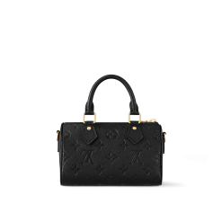 A miniature replica of the iconic Speedy bag, the Nano Speedy is crafted from Monogram Empreinte leather, embossed with the Monogram pattern. This grained leather is notable for its supple feel, which complements the bag’s rounded, body-friendly shape. Two top handles and a removable, adjustable shoulder strap offer different carry options.