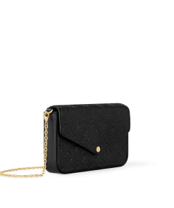 The Pochette Félicie is crafted from Monogram Empreinte leather, embossed with Louis Vuitton’s signature Monogram pattern. Designed to adapt to modern lifestyles, this envelope-style pouch contains a spacious compartment with two removable pockets: one zipped, one with card slots. It can also be carried in different ways thanks to a removable chain.