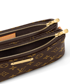 The Pochette Liv in Monogram canvas is designed to fit snugly under the arm. It comes with a detachable gold-tone chain and a removable, adjustable double strap in Louis Vuitton’s emblematic natural cowhide leather. A secure, double-zip closure and an engraved, gold-tone plaque finish this stylish piece.