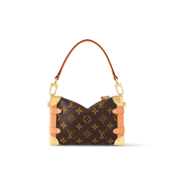 Evocative of the House’s historic trunks, the Side Trunk PM’s rectangular shape is fashioned from Monogram canvas with cowhide-leather trim and gold-color hardware. The reinforced corners and S-lock attached to the zipper are directly inspired by Louis Vuitton trunks. It can be carried by hand or on the shoulder thanks to the removable and adjustable leather strap.