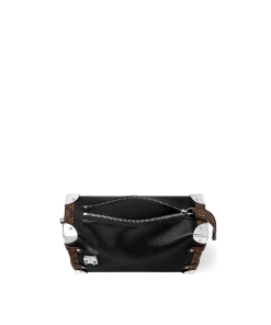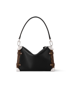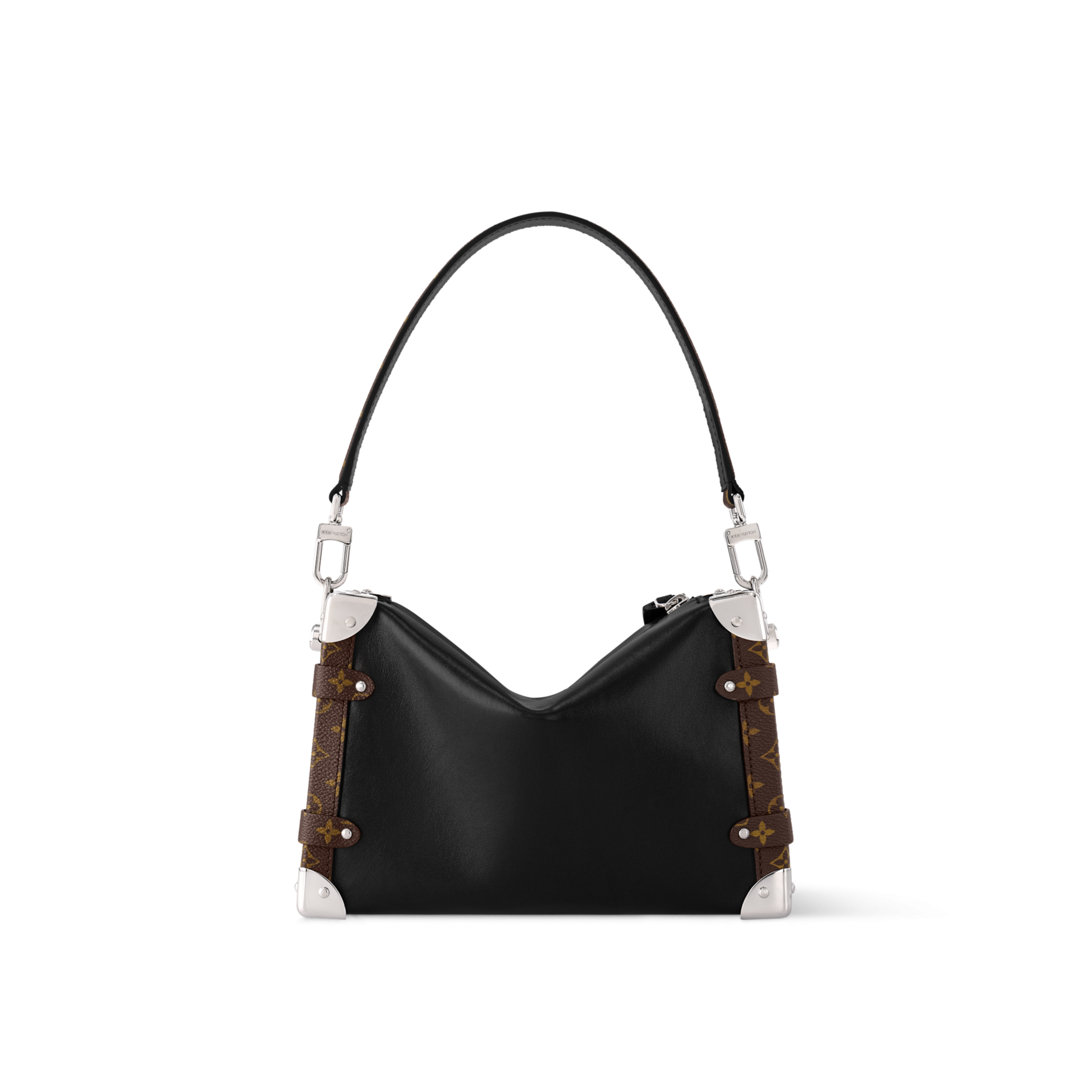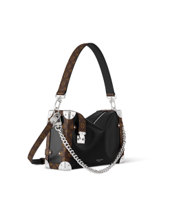 The Side Trunk Vibe is a fashion-forward take on our iconic Side Trunk shape that takes its design cues from Louis Vuitton’s historic trunks. Crafted from calfskin in a smooth and shiny “Vibe” finish, it is embellished with a riveted frame and S-lock in black leather and silver-tone metal, giving it a rock’n’roll vibe. This model offers different carry options thanks to its removable chain, removable leather handle, and removable, adjustable leather strap.