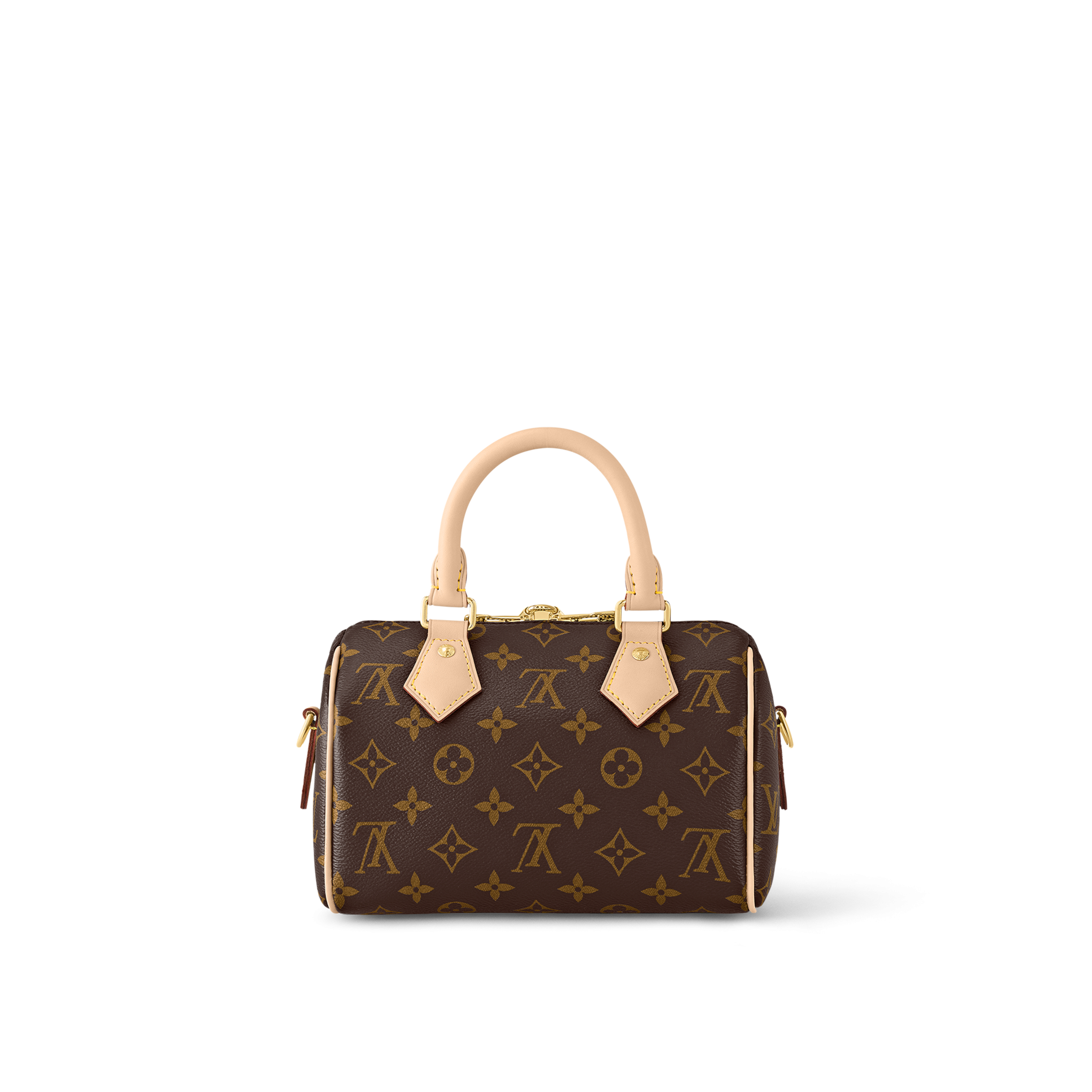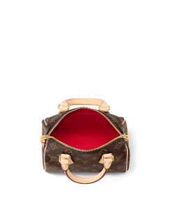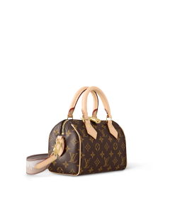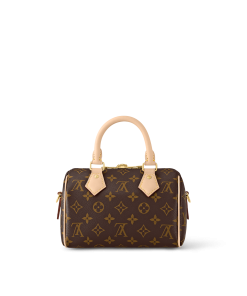 The Speedy Bandoulière 20 hand bag takes on classic Louis Vuitton allure in Monogram canvas with natural cowhide-leather trim and gold-color hardware. Inspired by the House’s emblematic travel bag, its distinctive shape is adorned with two rolled-leather top handles, padlock. A detachable two-color strap, signed Louis Vuitton, enables shoulder and cross-body wear.