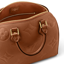 An elegant brown brings a traditional leather goods feel to this Speedy Bandoulière 25 handbag in Monogram-embossed leather. The bag’s iconic shape is perfectly complemented by the timeless color of the leather. The Speedy can be carried by its two rolled-leather top handles or the removable and adjustable leather strap.