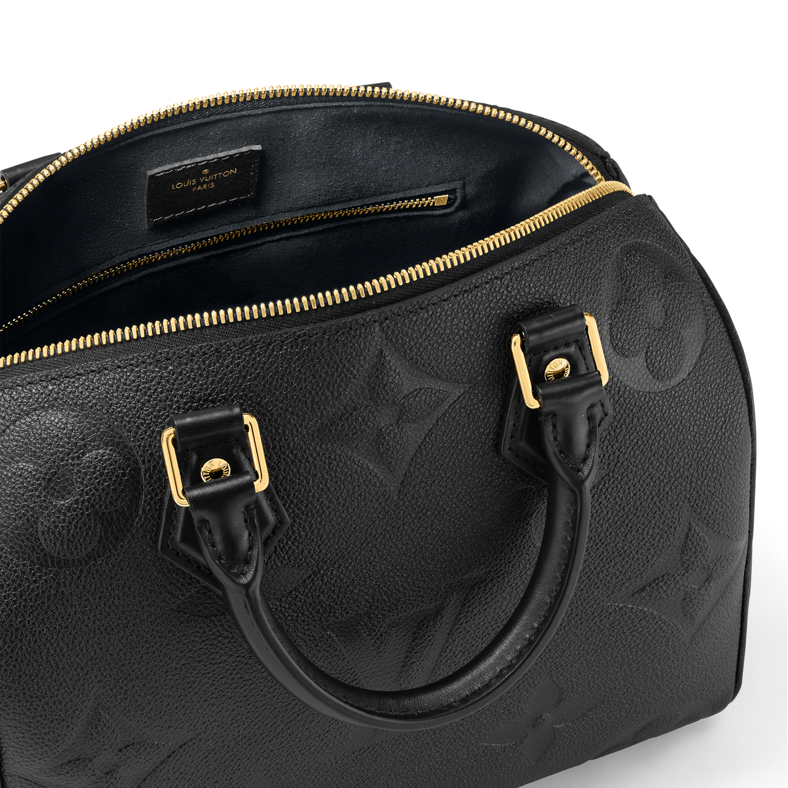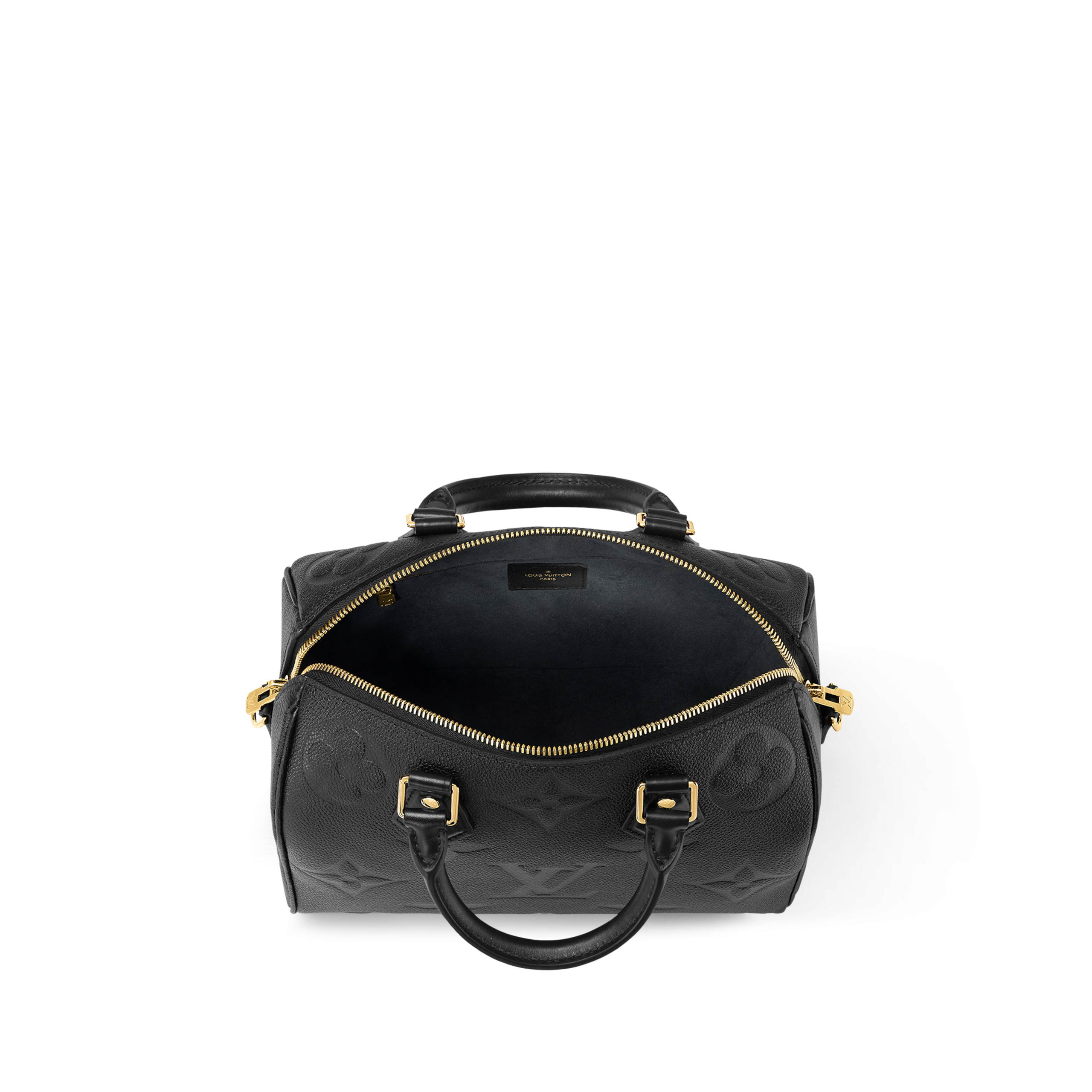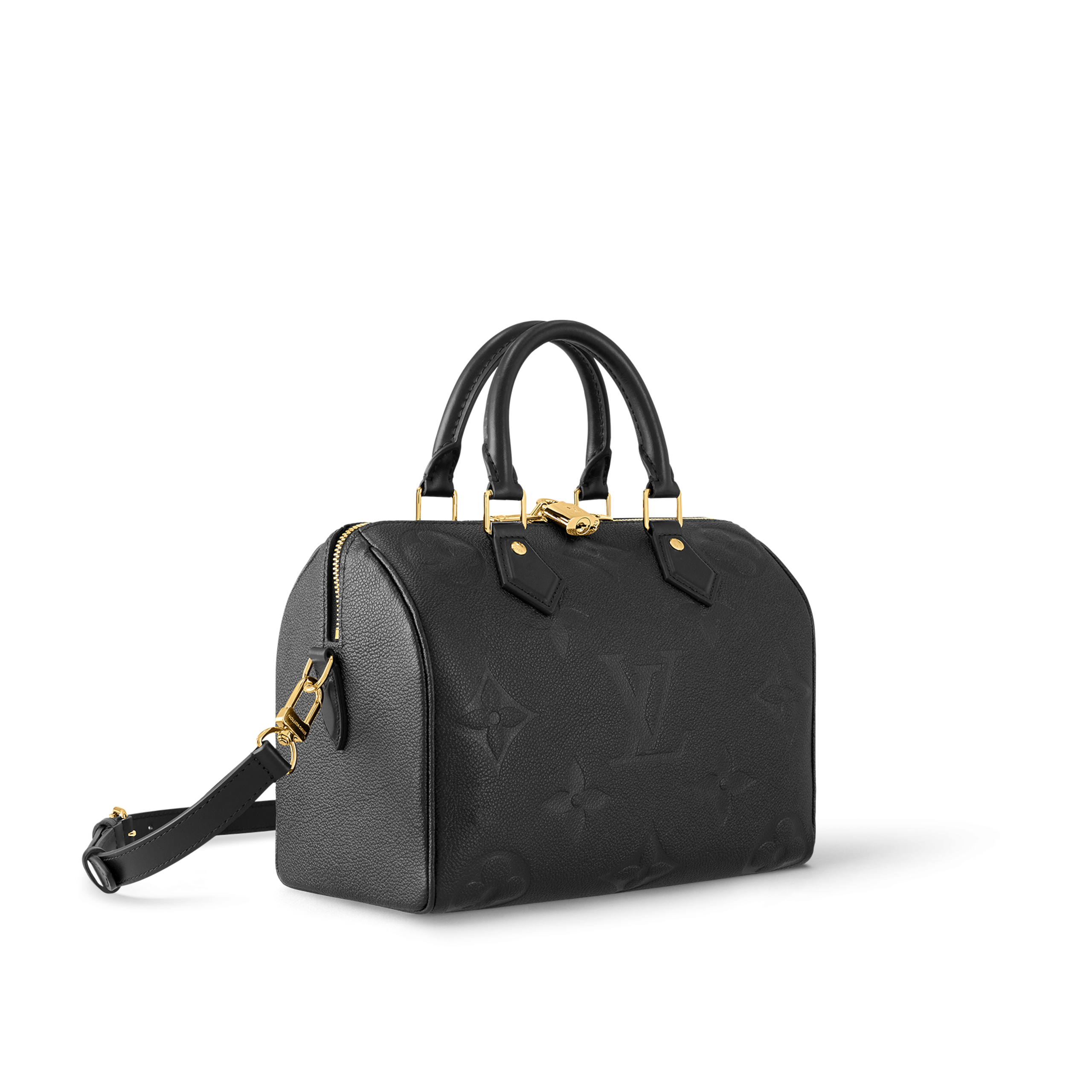 The Maison’s iconic Speedy 25 handbag is offered in this versatile edition, crafted from supple, embossed Monogram Empreinte leather. Elegant and compact, it is ideally sized for city life. Fitted with twin Toron handles and a detachable, adjustable leather strap, this timeless model can be carried by hand, worn on the shoulder or cross-body.