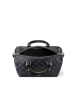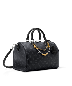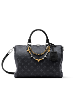 The Speedy Soft 30 is reimagined as part of the LV Ski collection in the House’s signature Monogram Eclipse canvas. The iconic style is adorned with an exclusive double chain and crinkled leather keybell, and also includes a signature padlock. This edition is sized to fit a tablet, as well as other daily essentials.