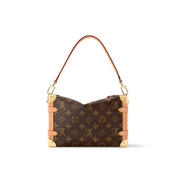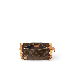 Returning to the House’s trunkmaking beginnings, Nicolas Ghesquière creates the Side Trunk MM handbag in Monogram canvas with leather trim. What strikes the eye is the singularity of the leather zip tab fitted with the iconic S-lock and the reinforced metallic corners. The wide top handle is removable as is the thin leather shoulder strap.